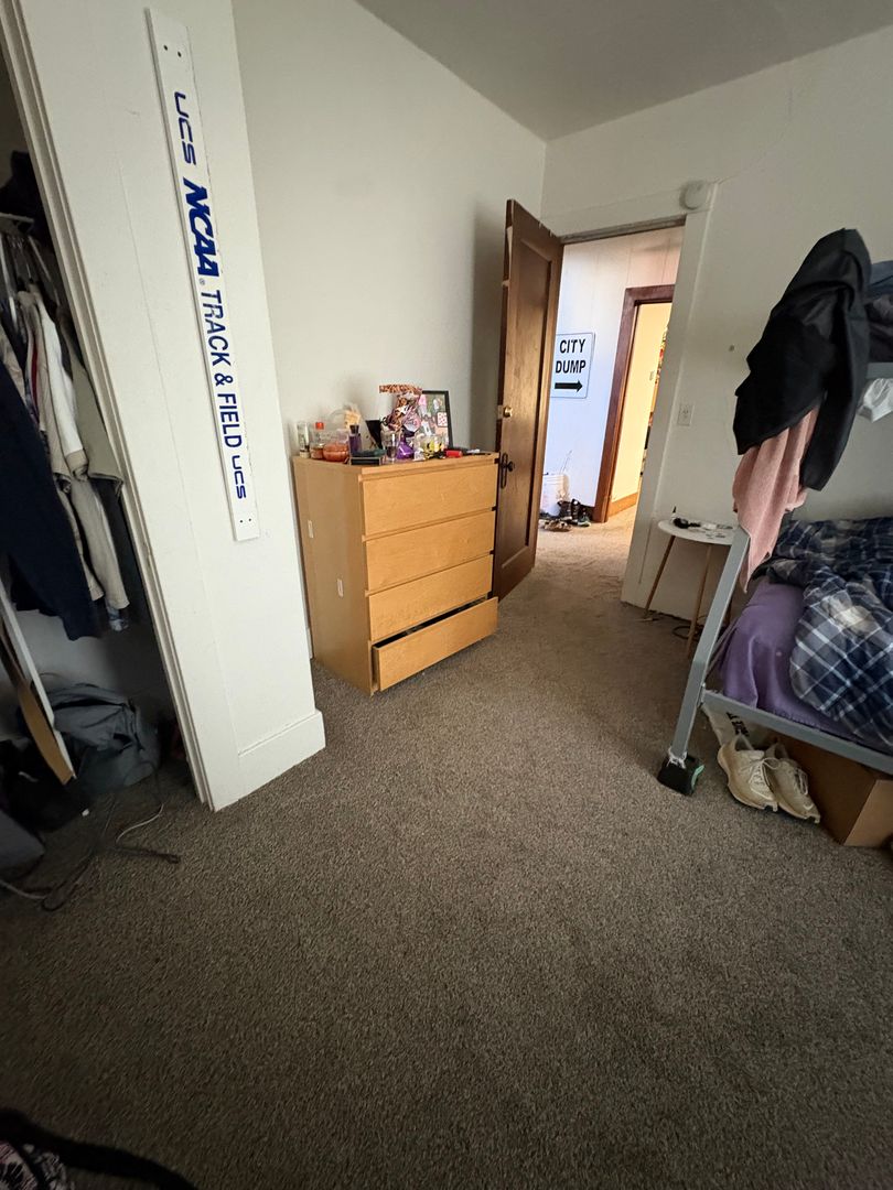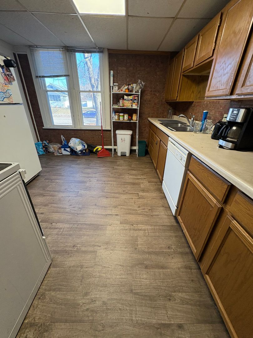 The home features a functional layout with large bedrooms, a full bathroom plus a half bath for added convenience, and plenty of common space. The kitchen comes equipped with a dishwasher and two refrigerators, making it ideal for shared living. In-building laundry adds to the convenience, and one off-street parking spot is included.